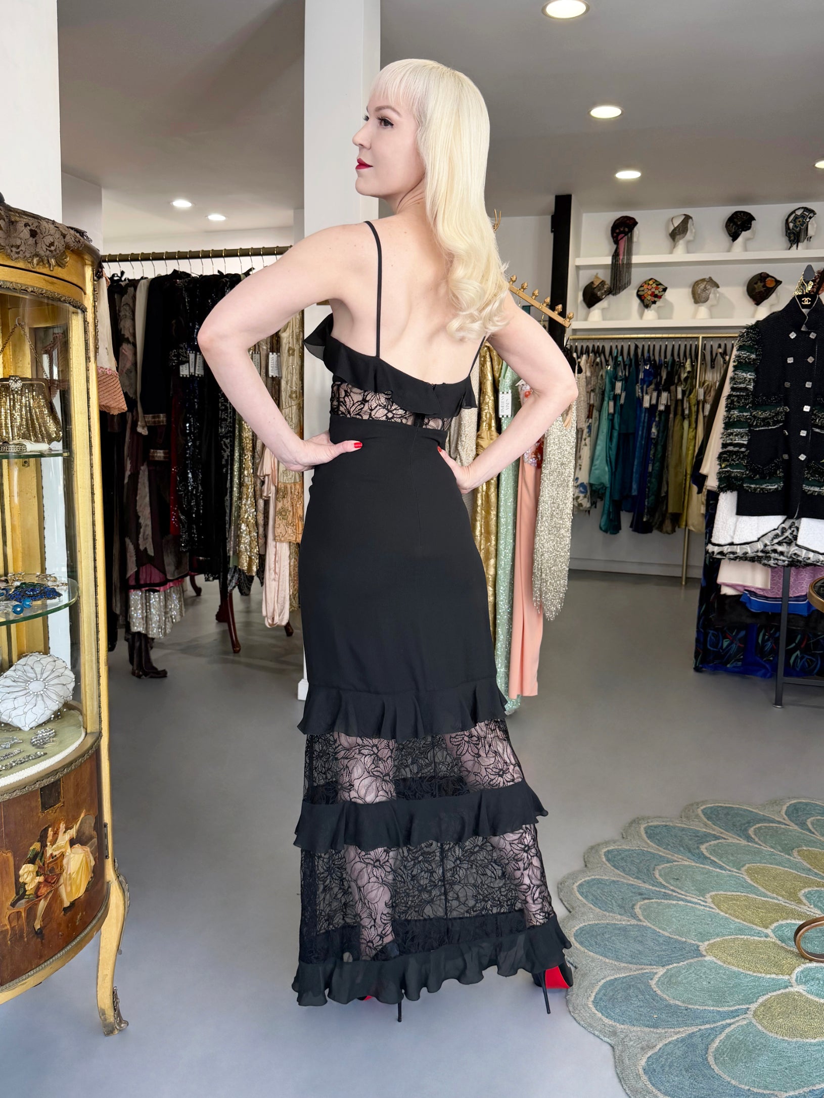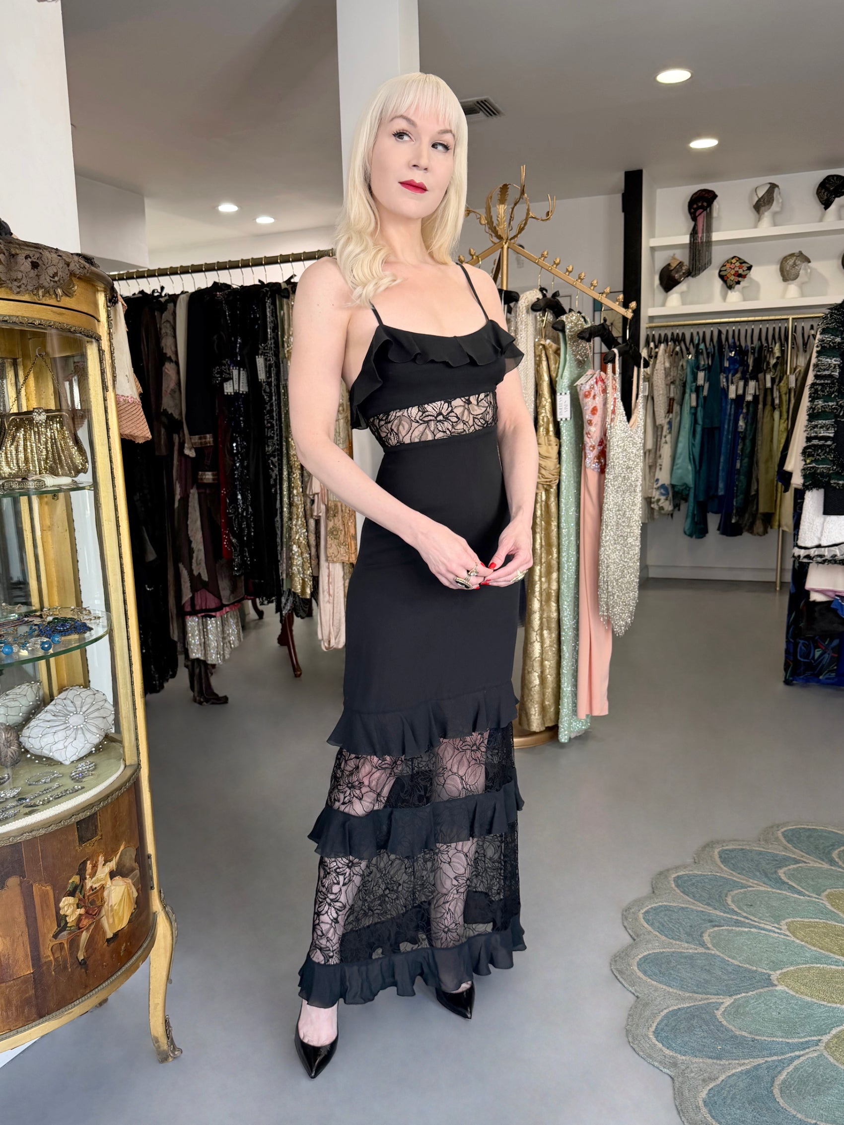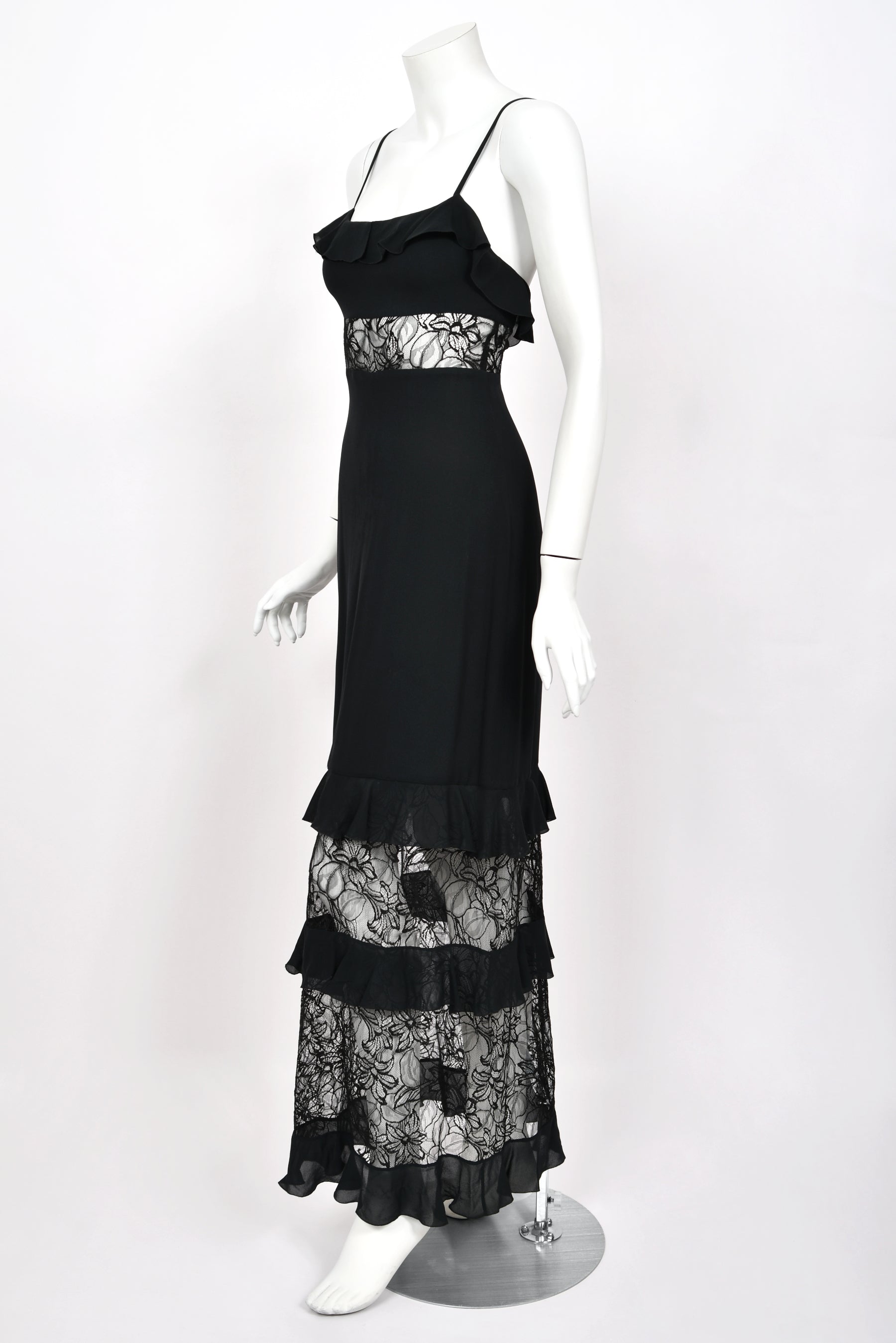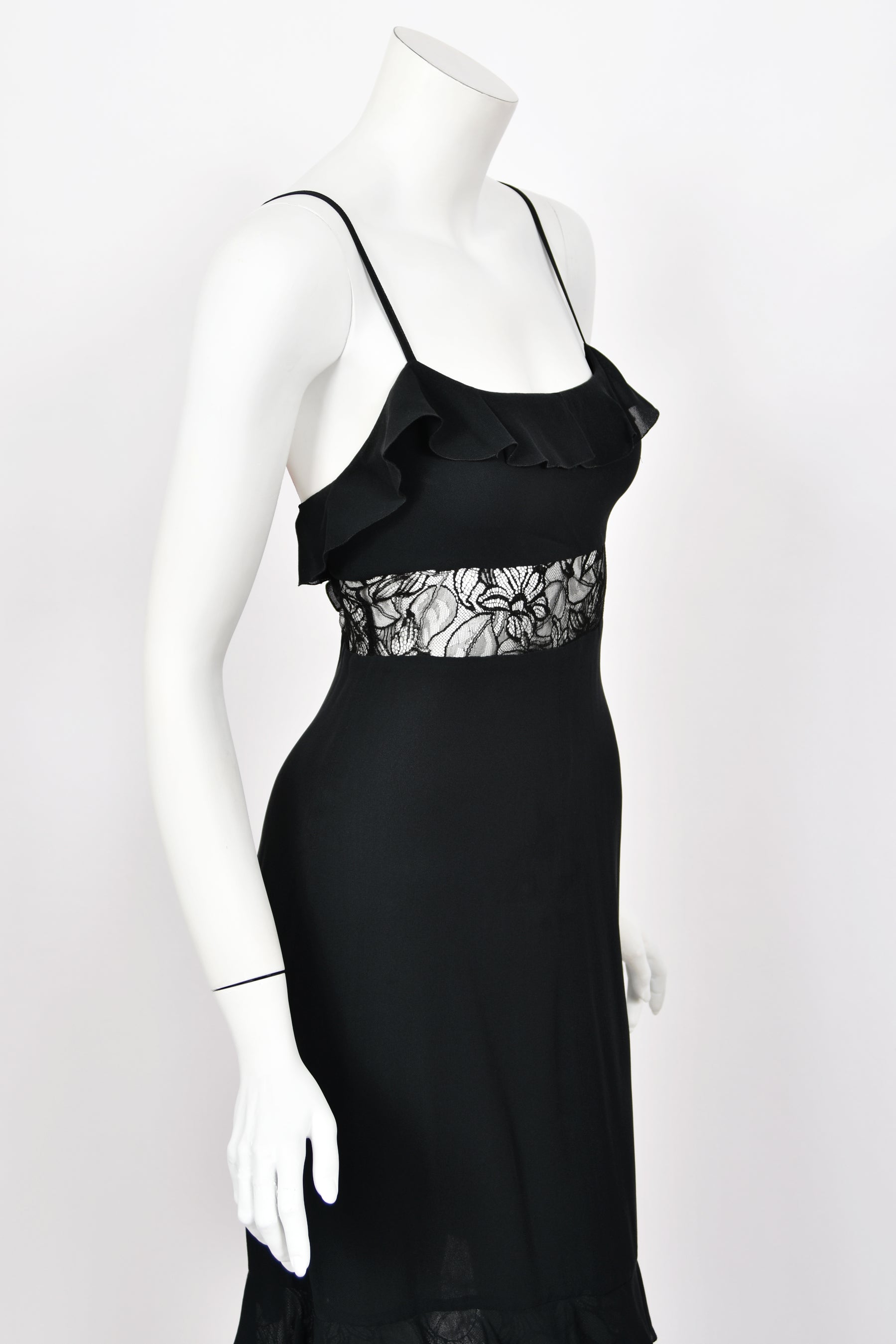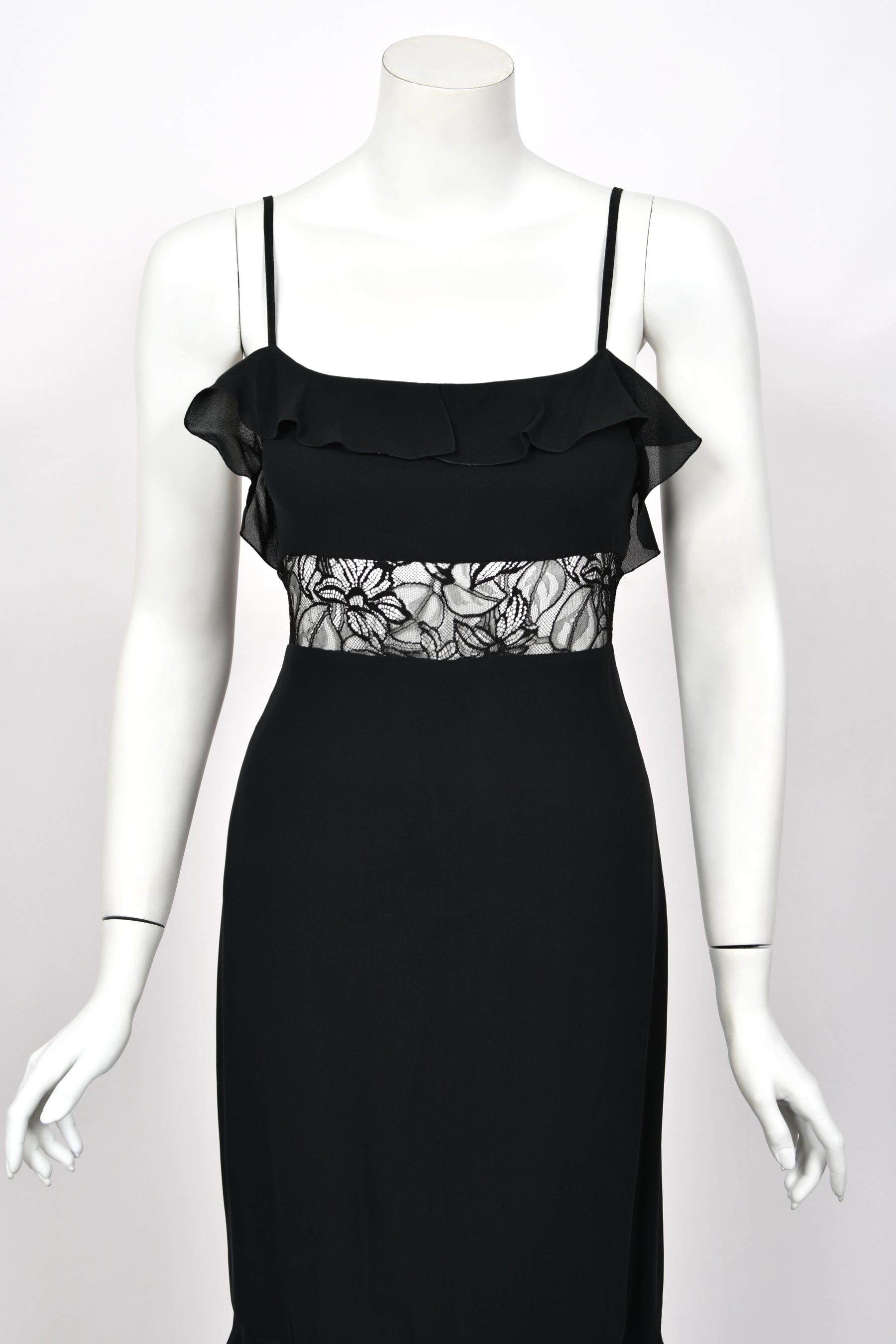 • 1994 Chanel by Karl Lagerfeld Cruise Collection Sheer Black Lace Ruffle-Trim Lingerie Gown