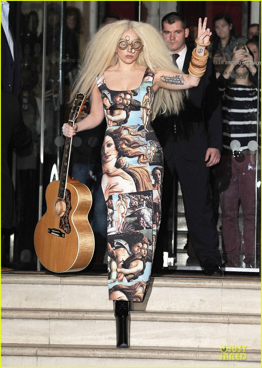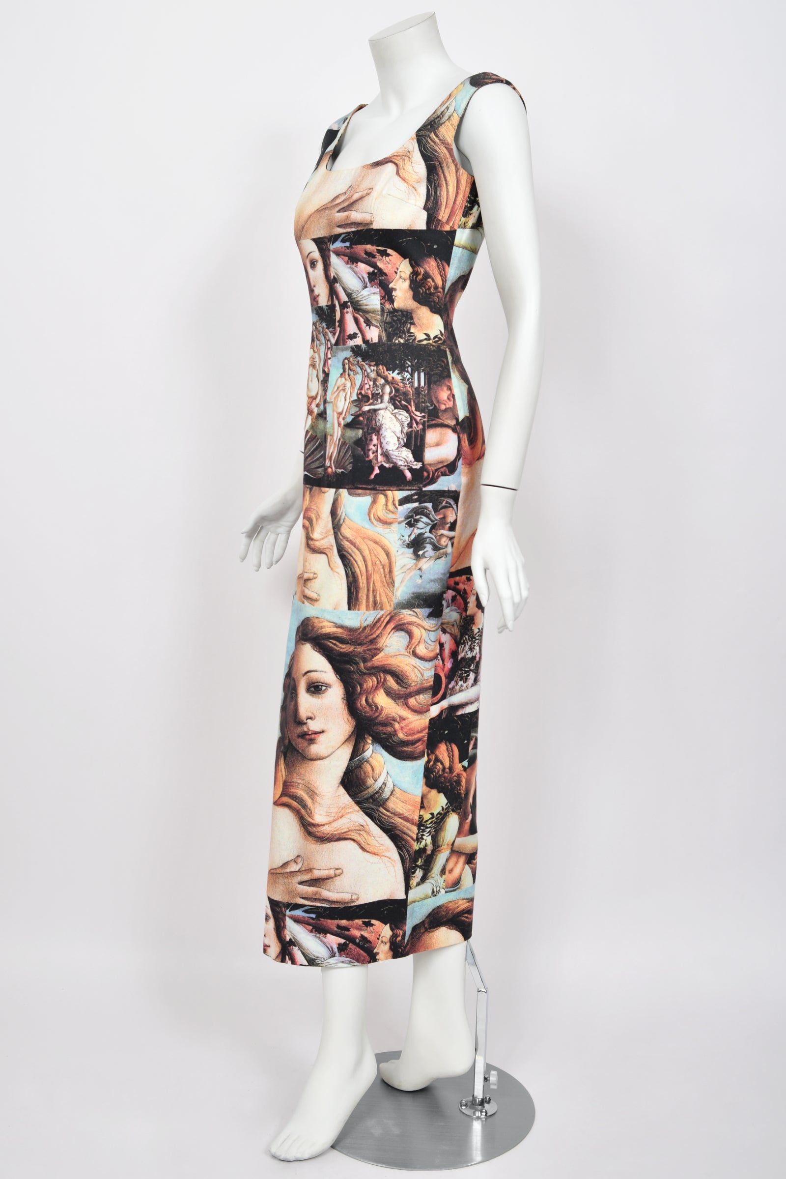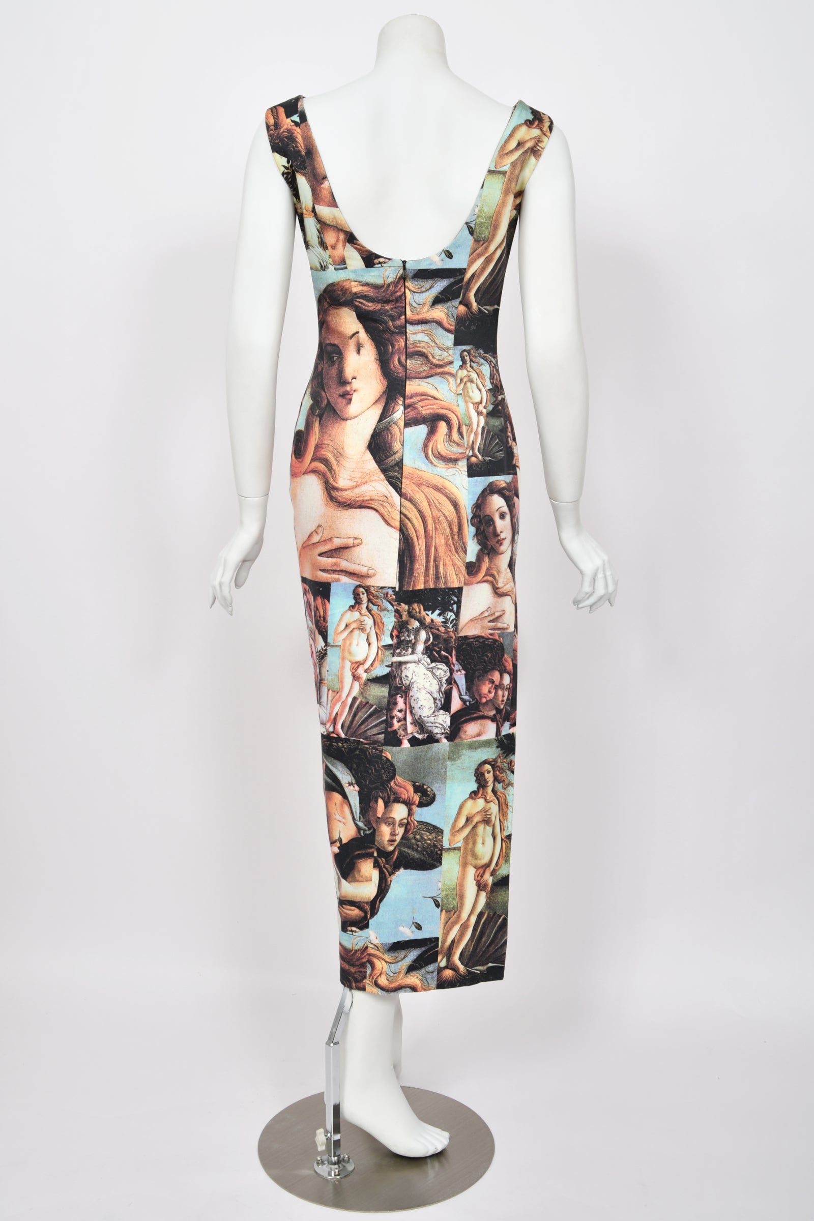 This extraordinary 1993 Spring/Summer Dolce & Gabbana dress is one of the Italian duo’s most recognizable creations — a true fusion of Renaissance beauty and 1990s sensuality. Dolce & Gabbana, founded in 1985 by Domenico Dolce and Stefano Gabbana, are celebrated for their unabashedly romantic, Sicilian-inspired aesthetic that blends history, sensuality, and drama. By the early 1990s, the designers had firmly established themselves as visionaries of Italian luxury — balancing old-world opulence with modern allure. Their Spring/Summer 1993 collection epitomized this ethos. Featured as Look 15 on the runway, this dress was modeled by supermodel Karen Mulder and later displayed in the Victoria and Albert Museum’s “Botticelli Reimagined” exhibition, cementing its place among fashion’s great art-inspired masterpieces. The same design was famously worn by Lady Gaga in London in 2013 while promoting her album ARTPOP, making it not only a museum-worthy piece but also iconic in the world of pop culture. Vogue stated about this collection, “Botticelli paintings were collaged together and covered in pearls; Liberty-style florals were appliquéd with lace; hats dripped with feathers; and sari fabrics were used for suiting. Dolce & Gabbana’s happy potpourri of influences... had roots in Europe and touched on high art and rustic traditions.”