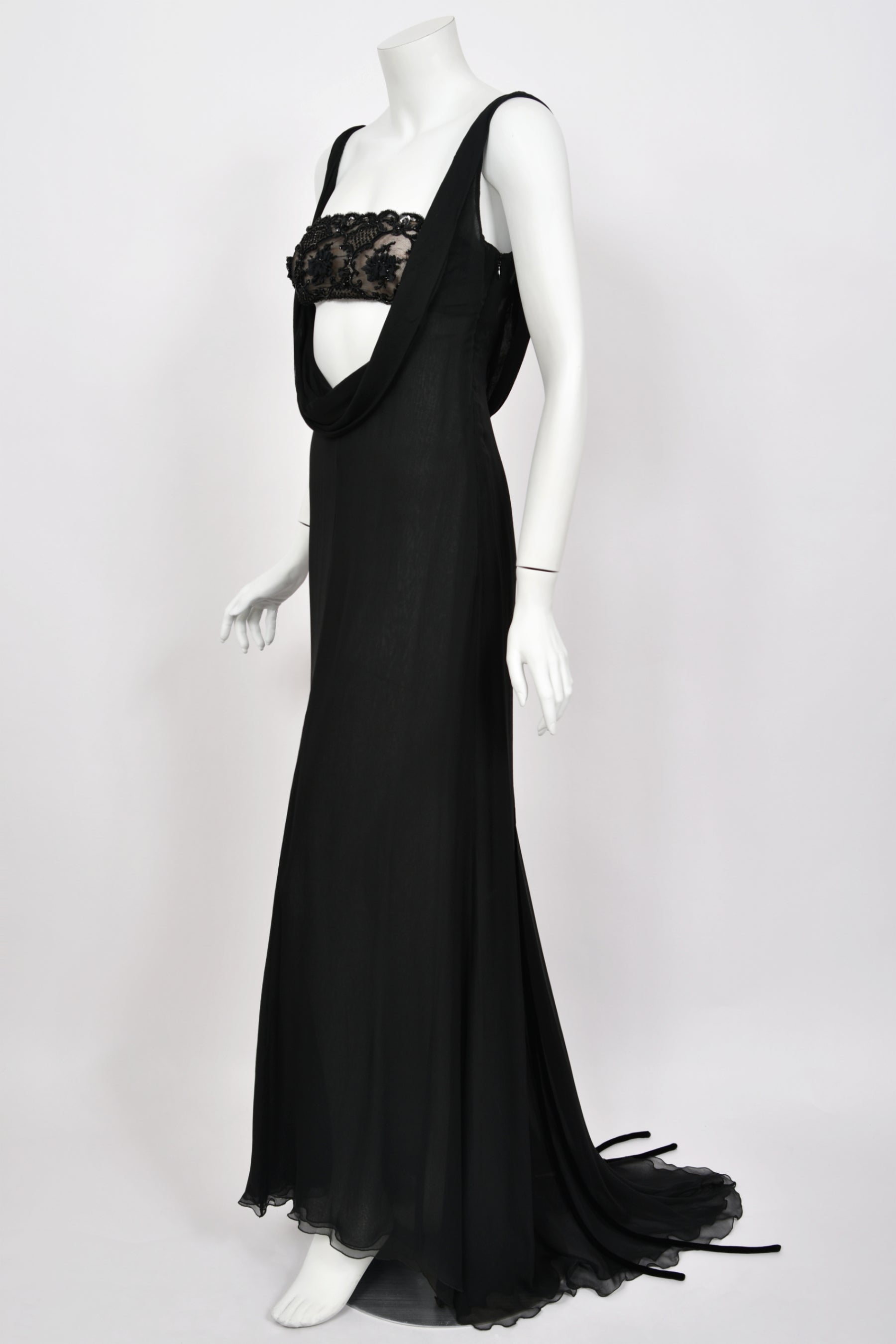 • 2004 Valentino Runway Beaded Bralette Draped Sheer Silk Cut-Out Gown